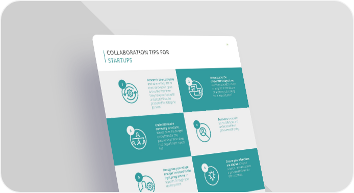 09 COLLABORATION TIPS FOR STARTUPS 1 Research the company 2 Understand the and where they are in corporate’s objectives. their innovation cycle. Are they looking to invest Is this the first time or acquire in the future they have worked with or are they just looking a startup? If so, be for a new solution?? prepared for things to go slow. Understand the Be aware know who 3 company structure. 4 you’re talking to and Where does the budget understand their come from for the procurement policy. partnership? Who does that department report to? Recognise your stage 6 Ensure your objectives 5 and get involved in the are aligned and your right programme to solution / product solves support through your a genuine problem for development. the corporate. Don’t skip on legal Don’t expect to get 7 support. Lawyers may 8 paid - at least at first. be expensive but when Most initial corporate it comes to corporate partnerships are for partnership negotiations pilots and PoCs that and legals it’s worth won’t lead to immediate getting a good one. revenues. 9 Be realistic. Even 10 Look at the bigger the most innovative picture. Lots of corporates will work corporates look to make at a slower pace than exclusive relationships a startup is used to. or deals; make sure you Chasing them every day think about your market. will just annoy them.