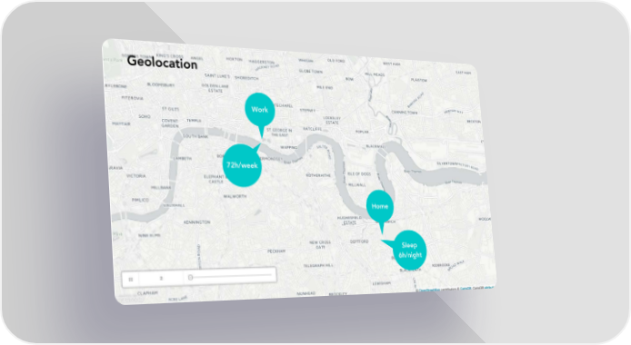 Geolocation Work 72h/week Home Sleep 6h/night