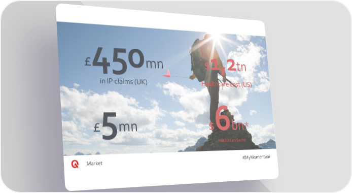 £450mn $1,2tn in IP claims (UK) Healthcare cost (US) £5mn $6bn* *Goldman Sachs Market #MyMomentum