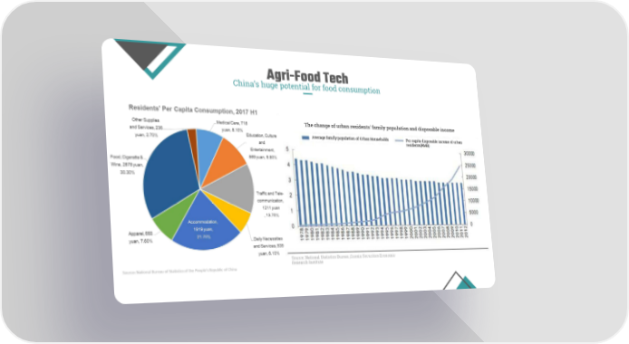 Agri-Food Tech China’s huge potential for food consumption The change of urban residents' family population and disposable income Average family population of Urban Households Per capita disposable income of urban residents(RMB) Source: National Statistics Bureau ,Guoxin Securities Economic Research Institute
