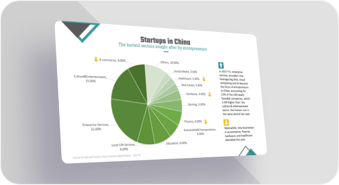 Startups in China The hottest sectors sought after by entrepreneurs Source: IT Juzi and Tecent, China Venture Capital Report – 2017 H1