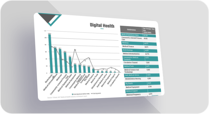 The Average Deal Digital Health Subdivisions Size (10000 RMB) Medical Equipment Sales 25,730 Community-oriented Primary 18.631 Care Medicine 18,079 Medical Finance 16,571 Biotechnology 14,857 Medical Informatization 10,770 Consumptive Medical 9,671 Treatment Circulation Channel 7,000 Medical Tools 6,971 Medical Science And 5,650 Technology Seek Medical Advice 4,825 gy Care Rehabilitation Nursing 4,285 Medicine Big Health Biotechnolo Treatment Technology Medical Tools Medical Support Big Health 4,147 Medical Finance Medical Equipment Circulation Channel Maternal Pregnancy Seek Medical Advice Medical Science And Consumptive Medical Medical Equipment 3,700 Rehabilitation Nursing Medical Informatization Medical Equipment Sales Medical Support Community-oriented Primary Source: Vcbeat, 2017 Medical Health Industry investment report Maternal Pregnancy 2,272