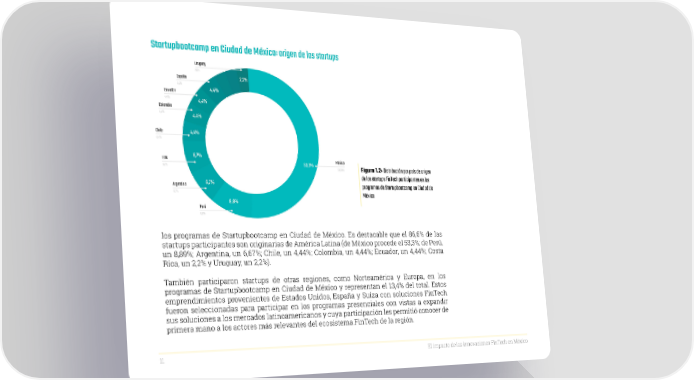 Startupbootcamp en Ciudad de México: origen de las startups Uruguay 2,2% España 2,2% 4,4% Ecuador 4,4% 4,4% 4,4% Colombia 4,4% 4,4% Chile 4,4% 4,4% EUA 6,7% México 6,7% 53,3% 53,33% Figura 1.2: Distribución por país de origen de las startups FinTech participantes en los Argentina 6,7% programas de Startupbootcamp en Ciudad de 6,7% México 8,9% Perú 8,9% los programas de Startupbootcamp en Ciudad de México. Es destacable que el 86,6% de las startups participantes son originarias de América Latina (de México procede el 53,3%; de Perú, un 8,89%; Argentina, un 6,67%; Chile, un 4,44%; Colombia, un 4,44%; Ecuador, un 4,44%; Costa Rica, un 2,2% y Uruguay, un 2,2%). También participaron startups de otras regiones, como Norteamérica y Europa, en los programas de Startupbootcamp en Ciudad de México y representan el 13,4% del total. Estos emprendimientos provenientes de Estados Unidos, España y Suiza con soluciones FinTech fueron seleccionadas para participar en los programas presenciales con vistas a expandir sus soluciones a los mercados latinoamericanos y cuya participación les permitió conocer de primera mano a los actores más relevantes del ecosistema FinTech de la región. 11 El impacto de las innovaciones FinTech en México