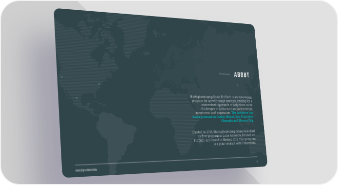 ABOUT Startupbootcamp Scale FinTech is an innovation program for growth-stage startups looking for a customised approach to help them solve challenges in areas such as partnerships, investment and expansion. The initiative has had a presence in Osaka, Miami, San Francisco, Chengdu and Mexico City. Created in 2018, Startupbootcamp Scale launched its first program in Latin America, focused on FinTech and based in Mexico City. This program is a joint venture with Finnovista. #sbcDigitalDemoDay 4