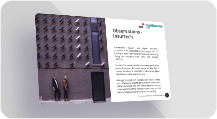 Observations - Insurtech Internet-First Insurers and digital insurance companies have accounted for the largest part of funding to date. The most prominent example being Zhong An Insurance from China that received US$931m. Internet-First Insurers enable a broader population to access insurance. As many people in Asia live in remote locations, a multitude of alternative digital distribution models have emerged. CH TE Although Internet-First Insurers have taken a large N I F part of historical funding, going forward investments F O will be channeled into new technologies that disrupt TE other segments of the insurance value chain, such as TA S claims managementandcustomeronboarding. E TH 75 The Future of FinTech in Asia Pacific: InsurTech 75