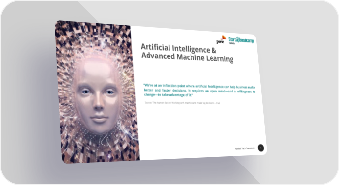 6 Artificial Intelligence & Advanced Machine Learning “We’re at an inflection point where artificial intelligence can help business make better and faster decisions. It requires an open mind—and a willingness to change—totakeadvantageofit.” Source: The humanfactor: Working with machines to make big decisions – PwC CH TE N I F F O TE TA S E TH Global Tech Trends: AI 6